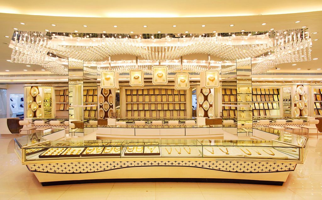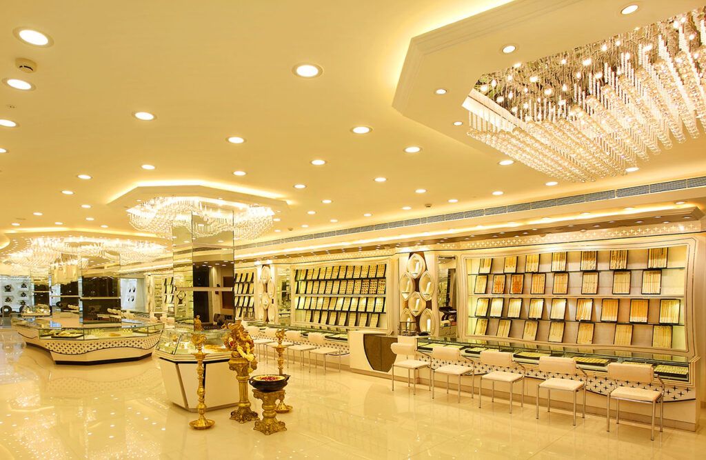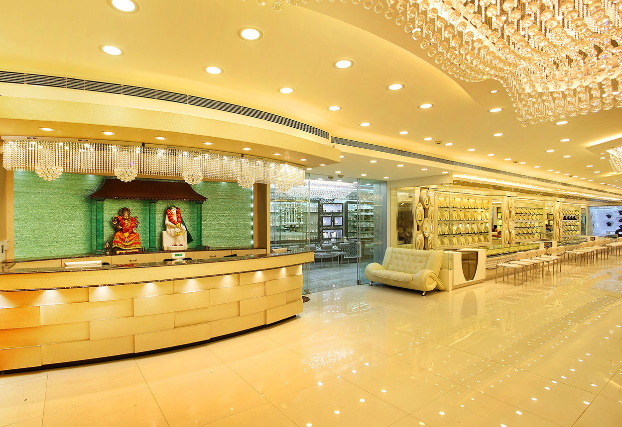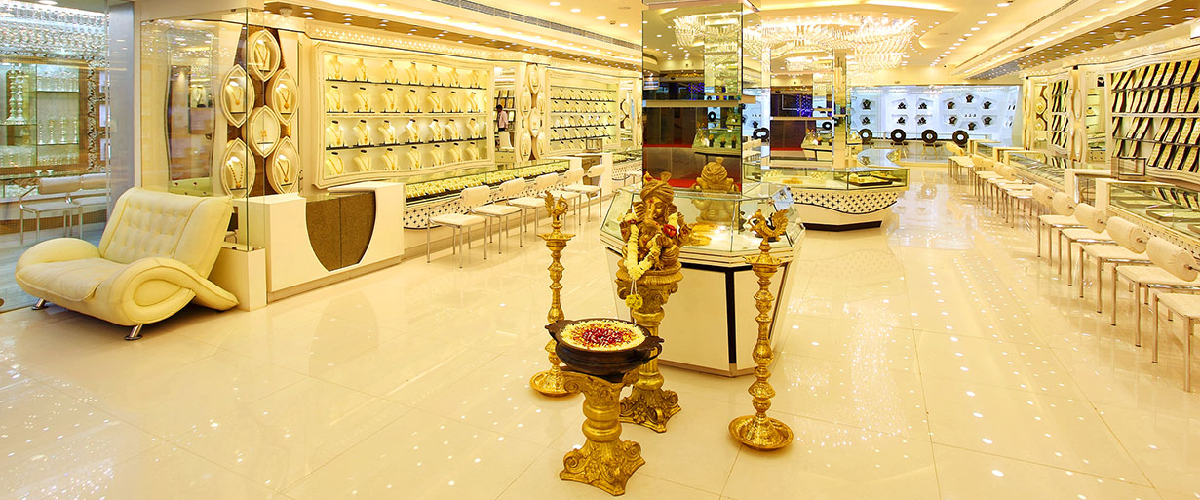 The Yelahanka showroom of RR Gold Palace is located on the International Airport Road. The outlet has separate rows for Gold Jewellery, Diamond Jewellery, Silver Jewellery, Bridal Jewellery and Gemstone Jewellery.